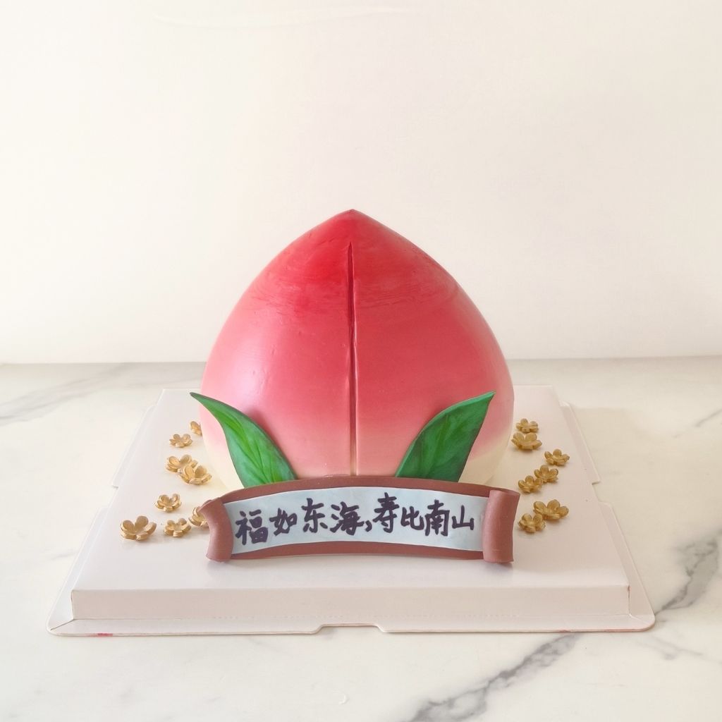 A beautifully crafted cake shaped like a symbol of good fortune and long life. With its vibrant design and delicate details, this cake brings a sense of abundance and joy to any celebration, making it the perfect centerpiece for prosperous moments.