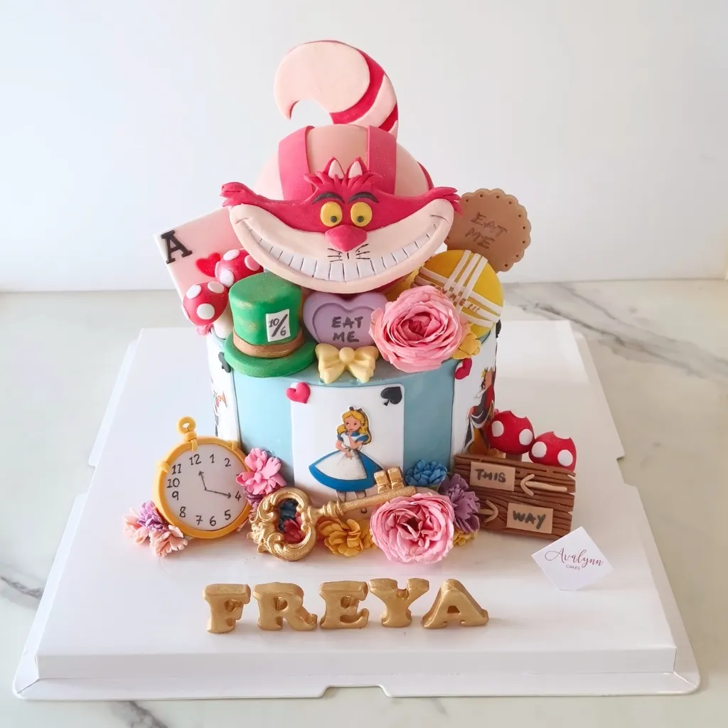 Step into a world of whimsy with this two-tier Alice in Wonderland cake, featuring a 4-inch pinata cake on top filled with an assortment of candies and chocolates. Perfect for adding a delightful surprise to your celebration, it's a sweet adventure from the first bite to the last!