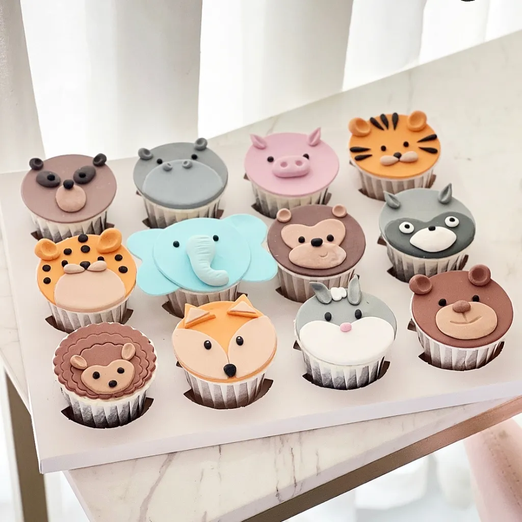Jungle Jamboree Cupcakes: A wild delight with 2D fondant animals! These cupcakes offer a taste of the jungle with moist cake bases and a hint of safari charm. Each bite is an adventure as you encounter handcrafted fondant animals atop these delightful treats. Experience the magic of the jungle in every bite!