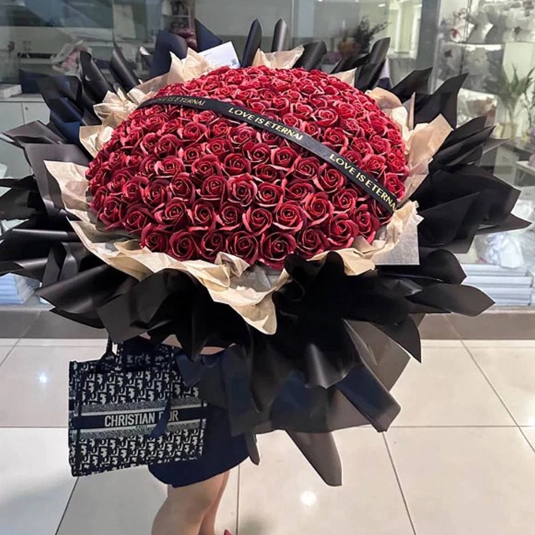 Sexy Black Pink Fresh Lychee Pink Rose Bouquet