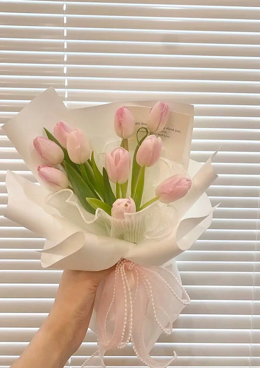 Princess Love 10 Fresh Pink Tulips in Lace Bouquet
