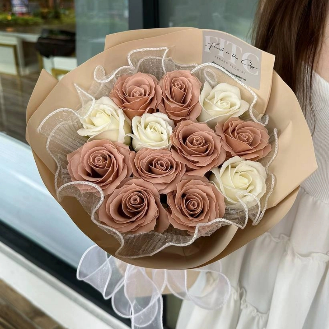 Natural Love Fresh Cappuccino & Choco Rose Mixed Bouquet